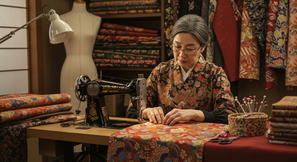 Одним из ключевых аспектов при пошиве одежды с японским дизайном является подбор ткани. Натуральные материалы, такие как хлопок, лен, шелк и шерсть, используются чаще всего. Они не только приятны к телу, но и отлично держат форму, позволяя создавать плавные, мягкие линии и выразительные складки. Ткани с фактурой и лёгким блеском помогают подчеркнуть изысканность и глубину образа.